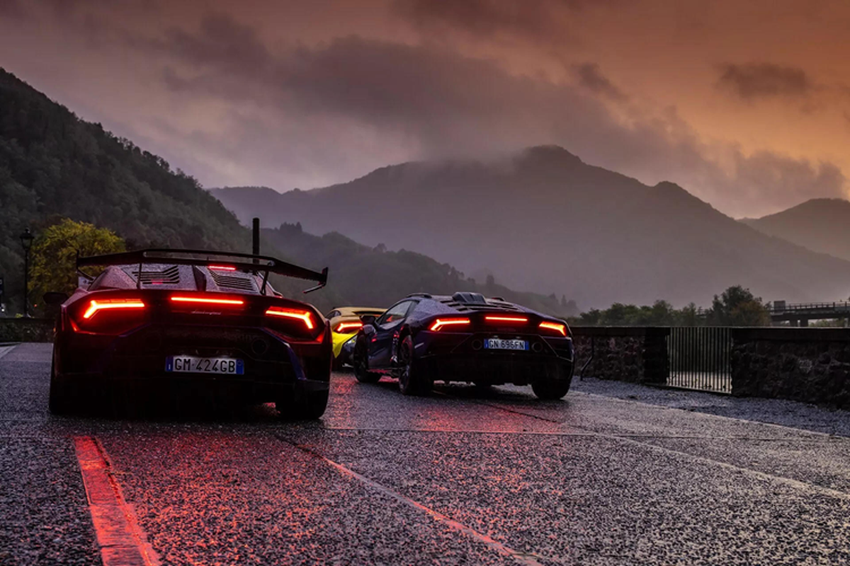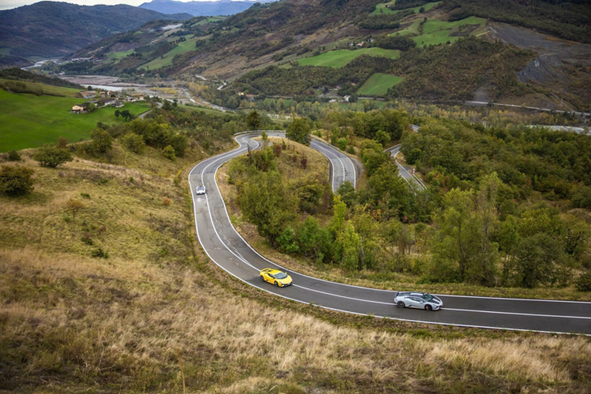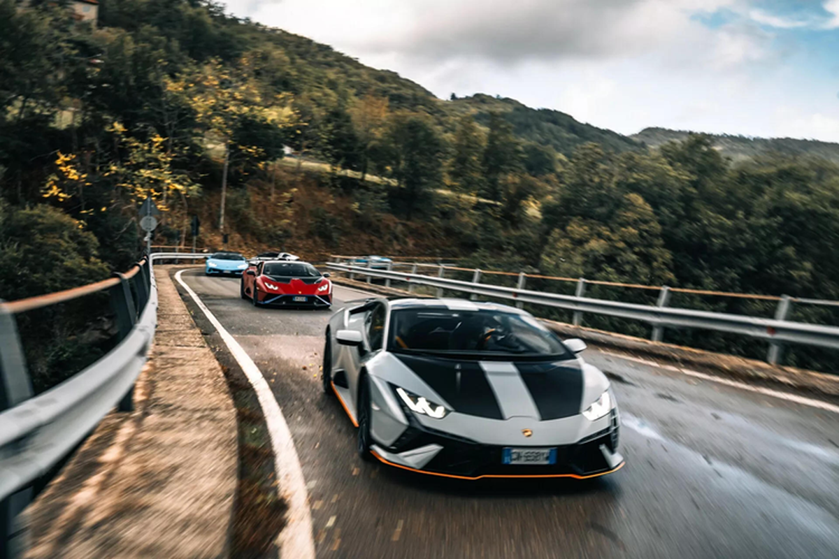 Dàn xe Lamborghini Huracan với đầy đủ các phiên bản từng được sản xuất đã tham dự sự kiện road trip trải nghiệm văn hóa nước Ý bằng cung đường núi Tuscan-Emilian Apennines đặc sắc.