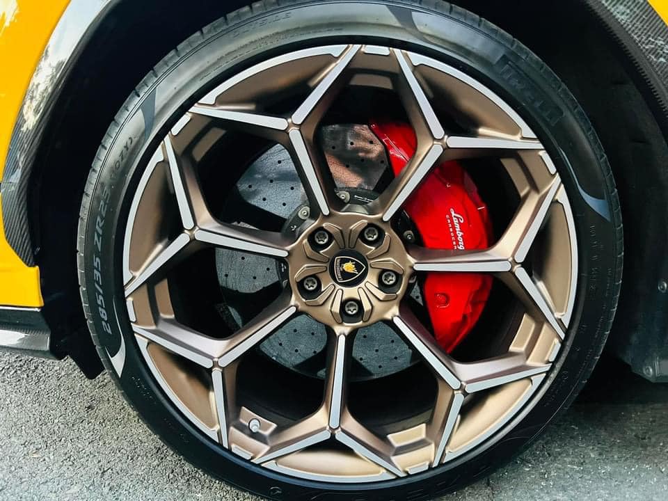 Đặc điểm nhận biết chiếc Lamborghini Urus Performante từng thuộc sở hữu của vợ chồng Đoàn Di Băng là bộ mâm 23 inch, thiết kế hình chữ Y và cắt vát tạo hình kim cương màu vàng đồng. Đây là trang bị chưa từng xuất hiện trên bất cứ chiếc Urus nào tại Việt Nam. Trước đó, nữ doanh nhân quận 7 còn cho biết giá trị của option này lên tới 486 triệu đồng.