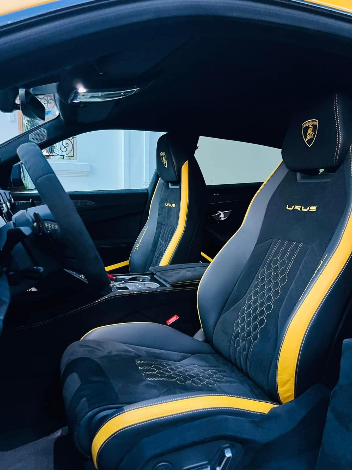 Hàng ghế trước được thiết kế ôm người, đi kèm chỉ khâu tạo hình quả trám. Dòng chữ "Urus" và "Performante" cũng được thêu trên ghế ngồi. Hàng ghế phía sau cũng được trang bị thêm một màn hình hiển thị cỡ nhỏ.