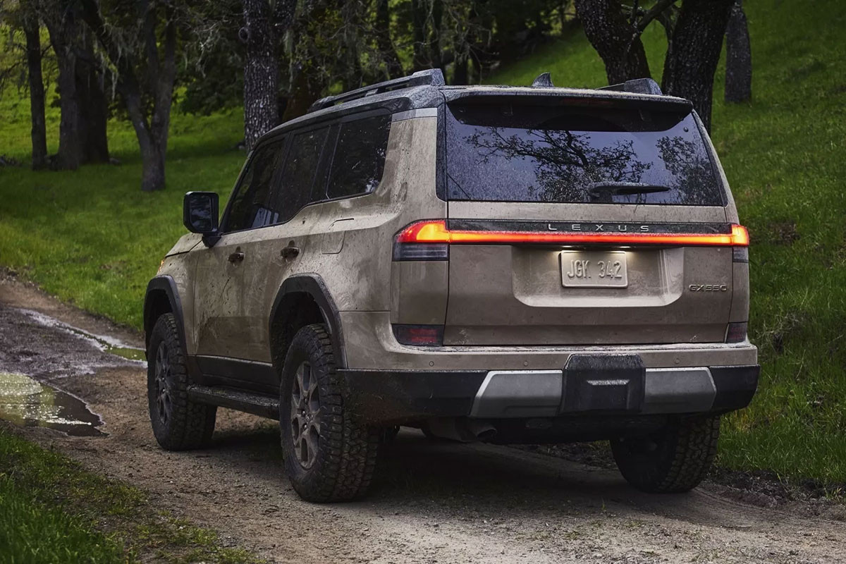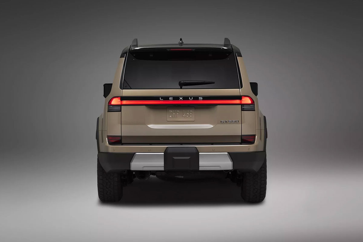 Ở phía sau, Lexus GX 2024 có thiết kế tối giản với dải đèn chạy ngang thân xe, cửa kính sau có thể mở độc lập và quan trọng hơn là cửa cốp đã chuyển sang kết cấu nâng hạ bằng điện thay vì mở sang hai bên như thế hệ cũ.
