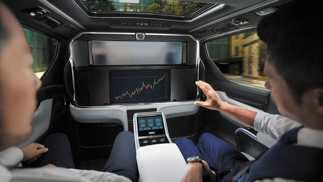 Trên vách kính được tích hợp màn hình LCD lên tới 26 inch. Hệ thống âm thanh vòm 19 loa Mark Levinson. Ngoài ra, mẫu MPV hạng sang Nhật Bản còn trang bị cửa sổ trời, tủ lạnh và nhiều chỗ chứa đồ dùng cá nhân. Bảng điều khiển cảm ứng ở giữa hai ghế sau là nơi hành khách có thể điều chỉnh vị trí ghế, chức năng thư giản, điều hòa, âm thanh,...