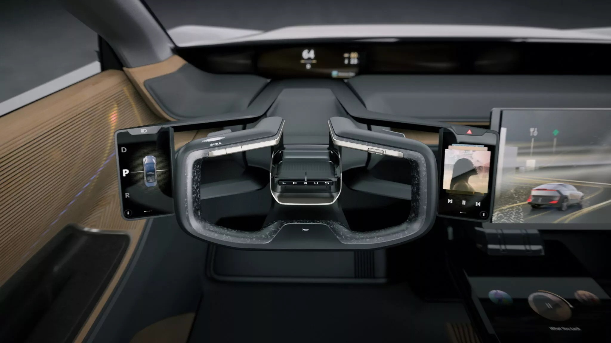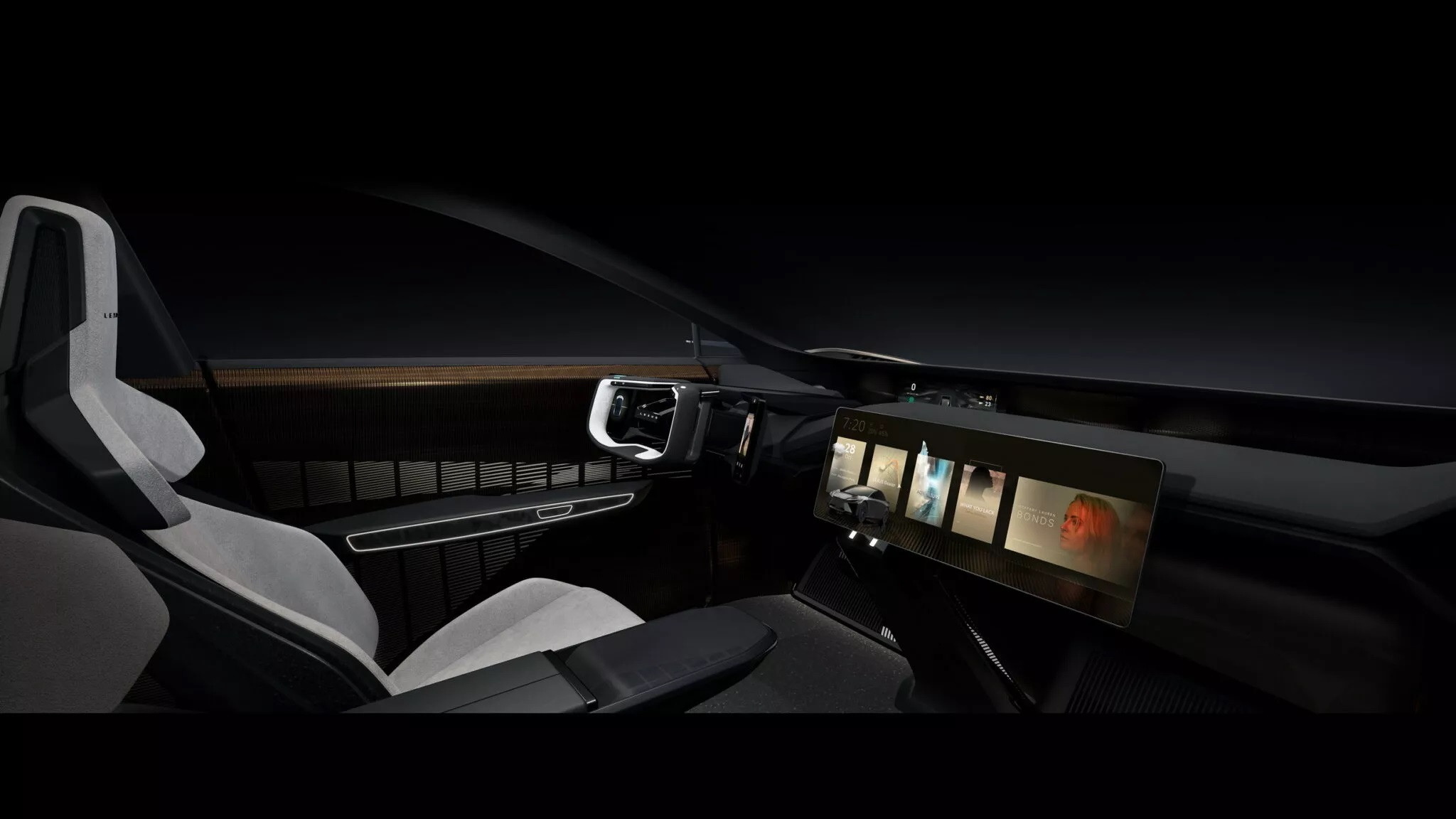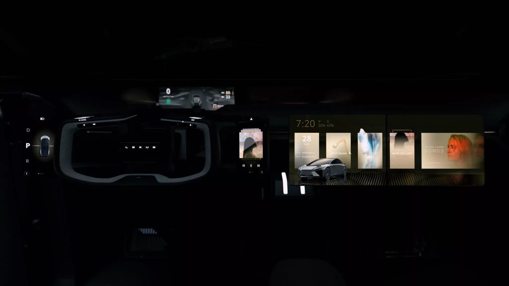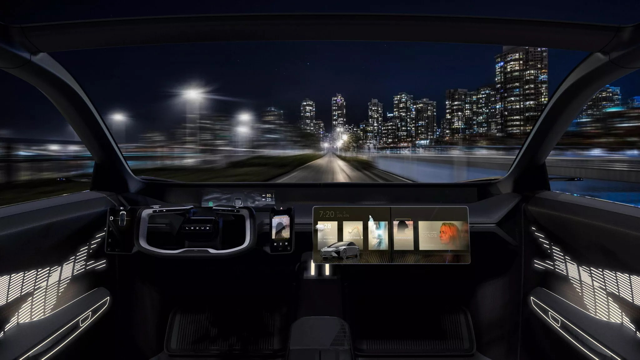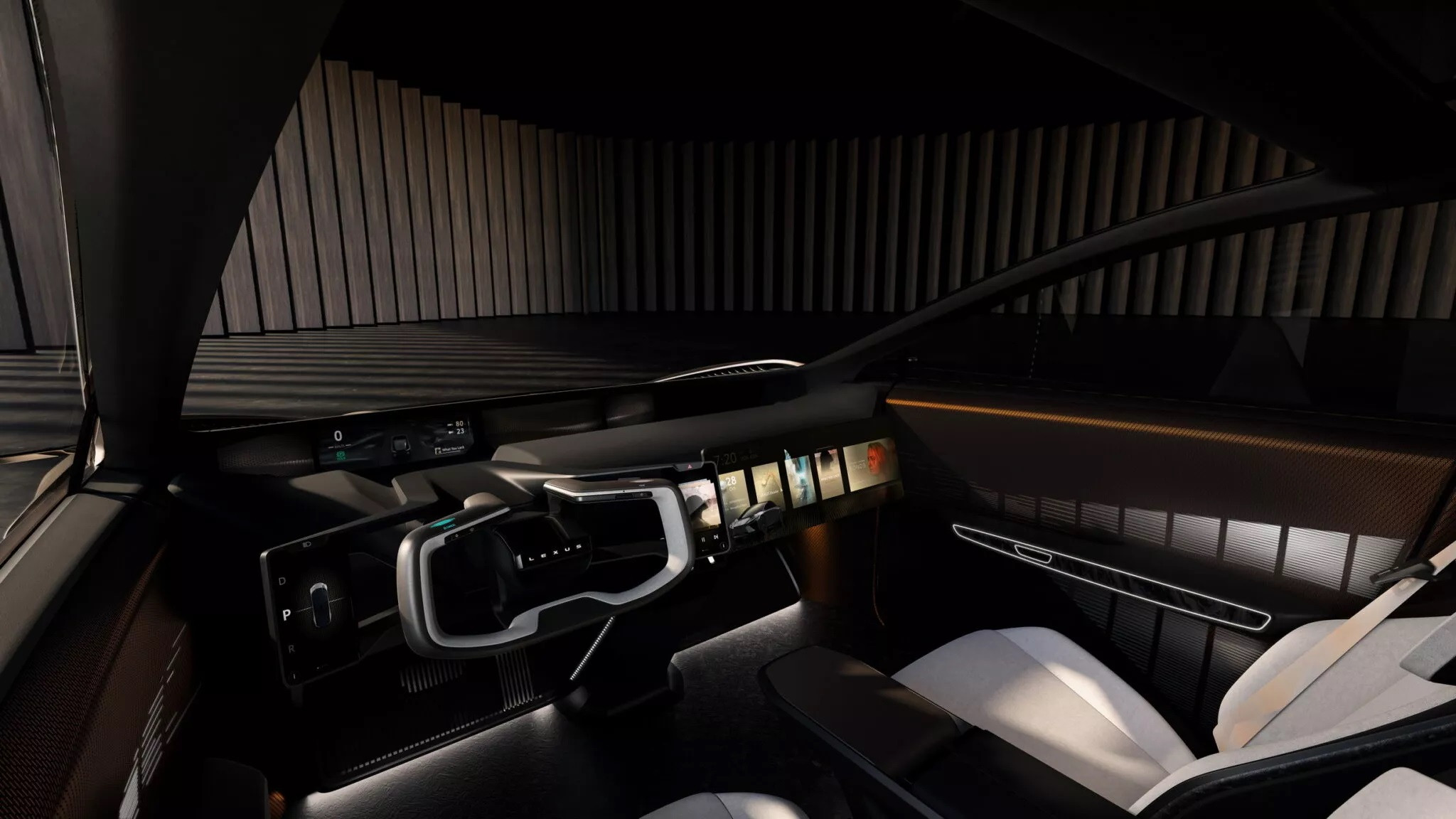 Nội thất LF-ZC hướng đến sự sang trọng và tiện nghi, trong đó ấn tượng nhất là vô-lăng mang phong cách đến từ tương lai. Phần trần xe được làm dạng cửa sổ trời toàn cảnh. Bên phải vô-lăng là màn hình thông tin giải trí kéo dài, bên trái có màn hình nhỏ chỉnh chế độ lái và cần số. Do bảng đồng hồ đặt xa, Lexus đã dùng màn hình hiển thị trên kính lái phù hợp hơn với người lái.