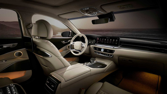 Sau ngày công bố ngoại thất xe hồi tháng trước, Kia K900 tiếp tục được thương hiệu chủ quản hé lộ nội thất mới. Màn hình cảm ứng trung tâm 12,3 inch cũ nay được nâng cấp lên loại 14,5 inch lớn hơn nữa lấy từ xe Genesis sang.