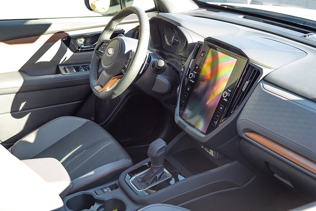 Nội thất xe cũng đã xuất hiện trong bộ ảnh hoàn chỉnh. Các bề mặt trong cabin sử dụng chất liệu mềm giúp tôn vẻ sang trọng của xe lên đáng kể. Màn giải trí trung tâm dạng dọc xuất hiện giống Outback, Subaru và Crosstrek mới nhất. Hệ thống điều khiển vật lý bị giảm số lượng. Cổng sạc USB-C xuất hiện cùng bàn sạc điện thoại không dây.