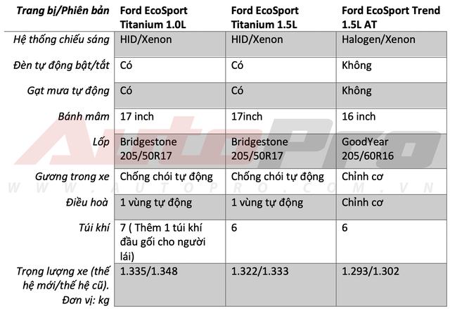 Tư vấn bán hàng cho biết thêm, Ford EcoSport thế hệ mới sẽ được bán ra với 3 phiên bản là Ford EcoSport Titanium 1.0L Ecoboost, Ford EcoSport Titanium 1.5L và Ford EcoSport Trend 1.5L AT. Phiên bản Ford EcoSport Trend 1.5L MT sẽ không còn trong danh sách sản phẩm.