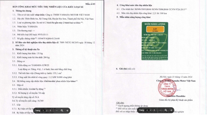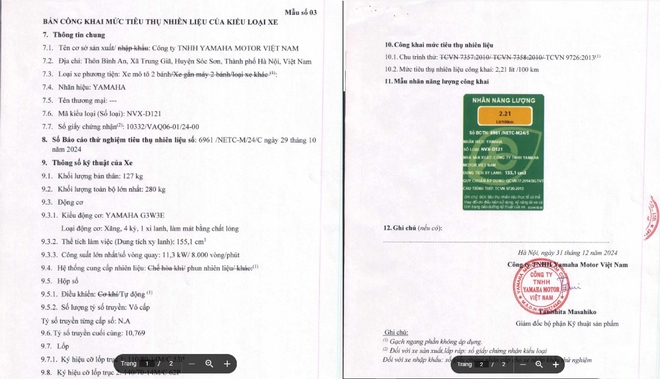 Theo thông tin mới nhất, Yamaha sẽ bán phiên bản mới của NVX trong tương lai gần. Điều này là có cơ sở, dựa trên thông tin có trong 2 trang tài liệu về mức tiêu thụ nhiên liệu mới được ký xác nhận của Yamaha đã xuất hiện trên mạng. Tài liệu này trình bày thông tin về mẫu Yamaha NVX với mã D111 và D121, có thông số rất giống với phiên bản NVX mới vừa ra mắt tại Indonesia.