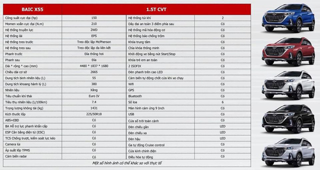 Hiện nay, những mẫu SUV đang được bán tại Việt Nam có Zotye Z3 giá 518 triệu, BAIC Q7 giá 588-658 triệu, Zotye Z8 giá 728 triệu và Z8 7 chỗ giá 758 triệu đồng. Giá này đã bao gồm trước bạ. BAIC X55 được dự đoán sẽ nằm giữa Zotye Z3 và BAIC Q7.