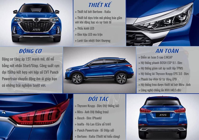 Catalog cho thấy BAIC X55 có khá nhiều công nghệ an toàn, đạt tiêu chuẩn 5 sao của C-NCAP Trung Quốc. Mẫu xe này có đầy đủ hỗ trợ phanh (ABS, EBD, BA), cân bằng điện tử, chống trượt, cảm biến lùi, camera lùi, cảm biến áp suất lốp hay ga tự động (Cruise Control).