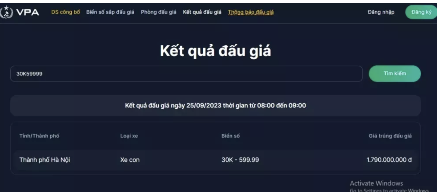 Biển số 30K-599.99 lên sàn đấu giá vào ngày 25/9 và được chốt giá khá cao, lên đến 1,79 tỷ đồng. Người trúng đấu giá biển số này đã hoàn thành nghĩa vụ tài chính, làm thủ tục đăng ký biển cho chiếc xe thể thao Porsche 911 Carrera S.