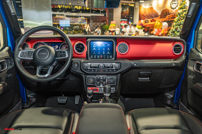 Thiết kế khoang cabin tương đồng "người anh em" Wrangler với những hình tròn và vuông lấy cảm hứng từ dòng xe sử dụng trong quân đội. Ở phiên bản Rubicon, vật liệu sử dụng chủ yếu là nhôm và da cao cấp. Hệ thống giải trí có màn hình cảm ứng 8,4 inch, hỗ trợ kết nối Android Auto/Apple CarPlay cùng dàn âm thanh Alpine 8 loa.