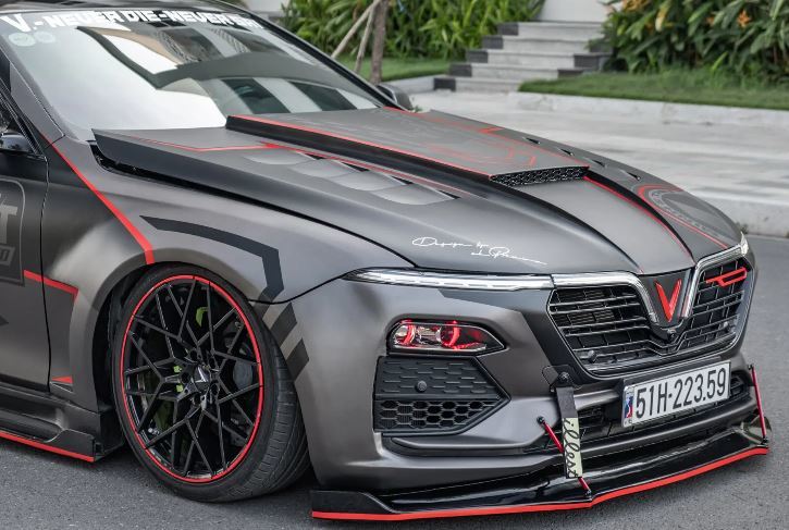 Trước đó, hồi tháng 5, một chiếc sedan hạng D VinFast Lux A2.0 được chủ nhân ở TP.HCM độ lại ngoại hình. Xe được lên bộ tem thể thao thiết kế riêng, phuộc lò xo được thay mới khiến gầm xe thấp hơn.