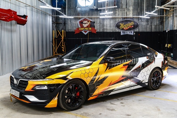 Cụ thể, lớp decal được chủ xe lên ý tưởng, phối 5 màu đen, cam, vàng, đỏ và trắng.Với việc được phát triển dựa trên nền tảng của BMW 5-Series F10, chính vì thế mà bộ tem trên chiếc VinFast này cũng vay mượn ý tưởng từ bộ tem dành cho 5-Series.
