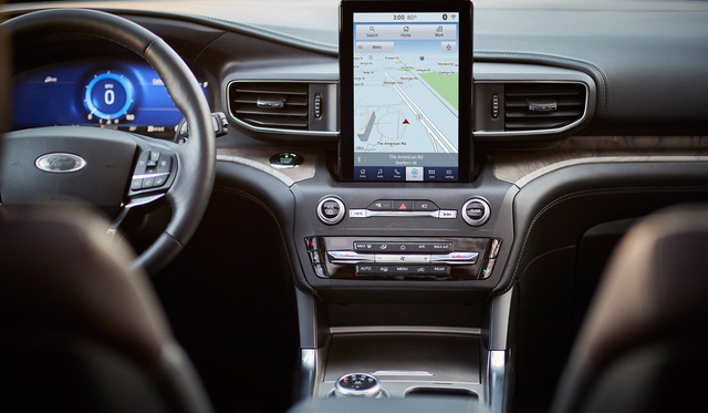Explorer mới được thay đổi toàn bộ vô-lăng, cụm đồng hồ, màn hình và cần số. Vô-lăng 3 chấu có thiết kế hiện đại hơn. Màn hình trung tâm Sync 3 đặt nổi. Hệ thống giải trí cao cấp nhất có âm thanh 14 loa Bang & Olufsen. Mẫu xe này đã bỏ cần số thông thường và chuyển sang dạng núm xoay.
