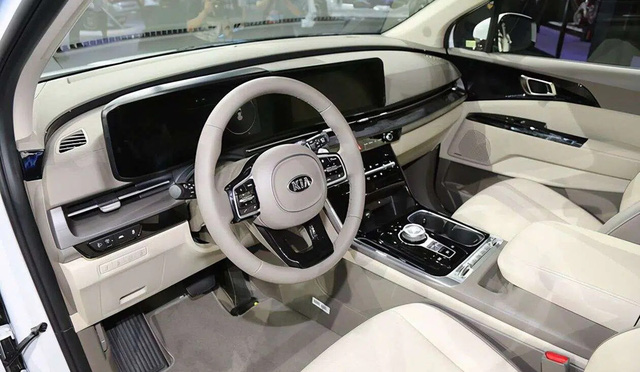 Táp-lô tạo điểm nhấn bằng cặp màn hình 12,3 inch nối liền. Apple CarPlay và Android Auto được trang bị tiêu chuẩn. Người dùng hàng ghế trước và sau có thể giao tiếp lẫn nhau nhờ camera kết nối tới màn cảm ứng trung tâm. Cả cửa bên và cửa hậu đều là loại đóng/mở điện.