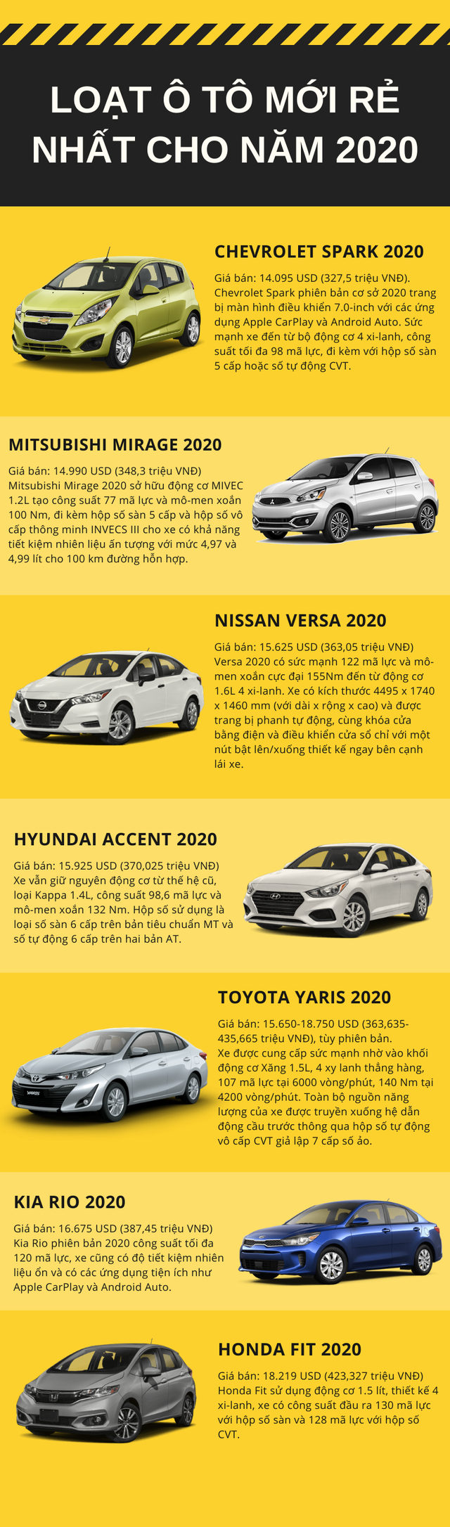 Chevrolet Spark 2020, Mitsubishi Mirage 2020, Nissan Versa 2020... là những mẫu xe giá rẻ sắp ra mắt trong năm 2020.