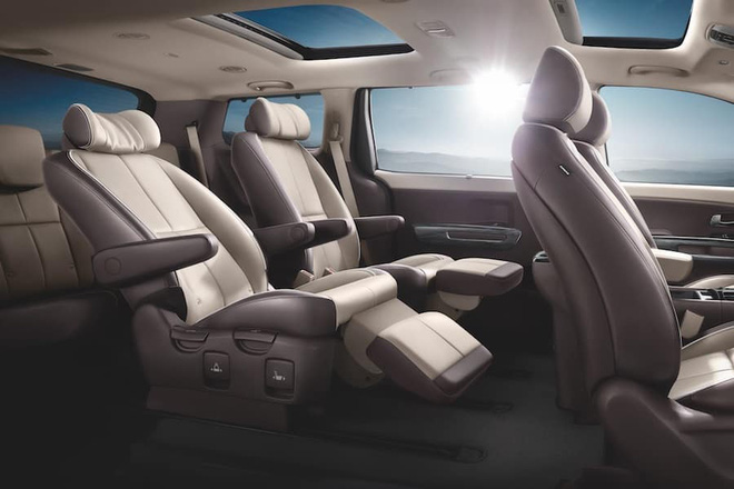 Kia Sedona 2021 lột xác hoàn toàn. Thiết kế xe lai SUV với phần đầu dài và thân vuông vức. Khi mới ra mắt, mẫu xe này còn được ví là Range Rover phiên bản Hàn Quốc. Kích thước xe tăng thêm với chiều dài thêm 40 mm và trục cơ sở thêm 30 mm. Nội thất hiện đại hơn với cặp màn hình đôi 12,3 inch nằm chung dưới một lớp kính. Điều thú vị là người dùng hàng ghế trước và sau có thể giao tiếp lẫn nhau nhờ camera kết nối tới màn cảm ứng trung tâm.