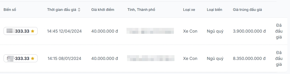 Tham khảo trên website đấu giá biển số, dãy số 92A-366.66 được một người đấu thành công với số tiền 120 triệu đồng, gấp 3 lần giá khởi điểm. Con số này bằng một nửa số tiền mà chủ nhân bỏ ra để sở hữu chiếc VinFast VF 3. Tuy nhiên, nhiều người cho rằng đây là mức giá rẻ so với dãy số tứ quý tài lộc 366.66.