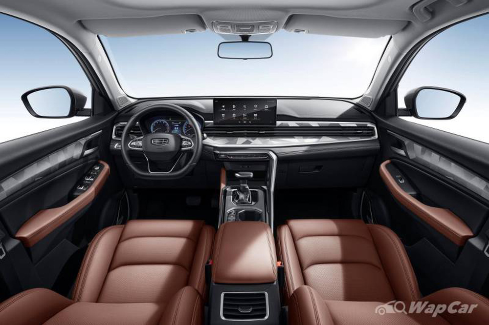 Nội thất bên trong Vision X6 Pro cũng đã được Geely "đại tu" lại so với phiên bản trước, gây chú ý với hai tông màu nâu và đen, tạo cảm giác ấm cúng cho không gian trong xe. Đặc biệt, mặt táp lô xe và viền cửa còn được trang trí bằng họa tiết caro độc đáo.