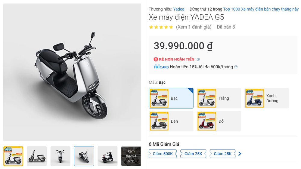 Thị trường xe máy điện tháng 10 đang được nhiều hãng xe điều chỉnh giảm giá cho các mẫu xe ăn khách. Trong đợt giảm giá ngắn hạn nhân sự kiện 10/10, chiếc xe máy điện G5 của Yadea đang giảm 7 triệu đồng khi mua trên sàn thương mại điện tử.