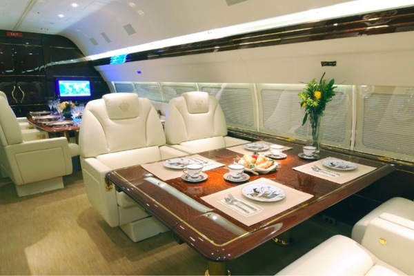 Ông Trump thích phô diễn những vật dụng trên máy bay như chiếc ghế da màu kem được làm riêng, phòng tắm mạ vàng và khoá ghế được dát vàng 24k.