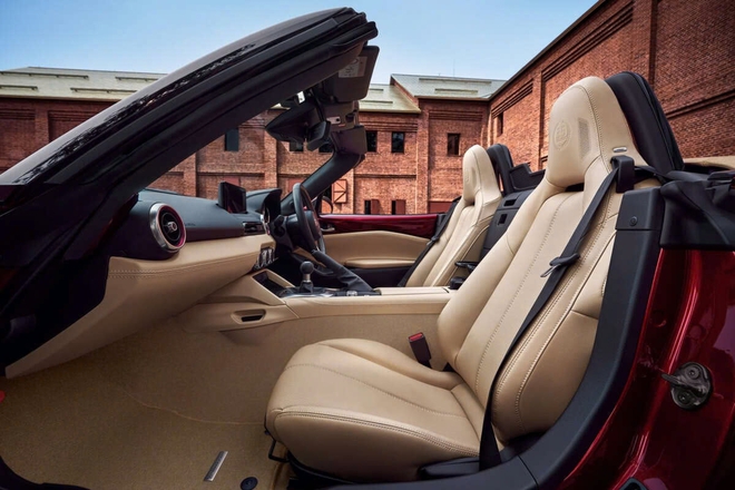 Điểm nổi bật của phiên bản kỷ niệm nằm ở lớp sơn độc quyền Artisan Red Premium Metallic, lần đầu tiên được áp dụng trên MX-5 nhờ công nghệ sơn Takuminuri. Xe còn được trang bị bộ mâm 17 inch hoàn thiện bóng cao cấp, logo "35th Anniversary" cùng số seri và nội thất màu be tinh tế với họa tiết kỷ niệm trên tựa đầu ghế và thảm sàn. Ngoài ra, khách hàng có thể tùy chọn vỏ chìa khóa cùng màu Artisan Red.