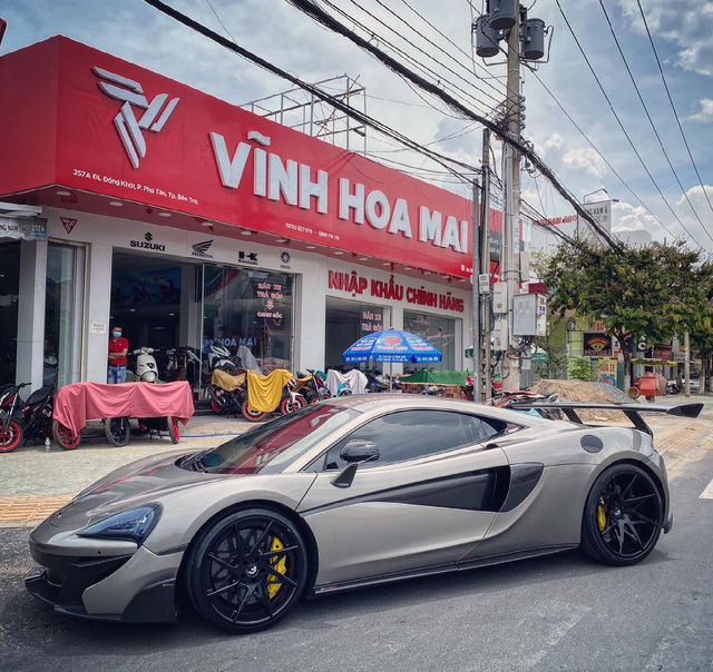 Chiếc McLaren 570S này từng qua tay doanh nhân Nguyễn Quốc Cường khi mới về nước và được biết đến là chiếc 570S độ độc nhất Việt Nam. Ngoại thất của xe được nâng cấp lên bodykit Vorsteiner VX với nhiều chi tiết mới làm từ sợi carbon giúp chiếc xe nhẹ hơn. Phần cản trước được thiết kế lại với nhiều hốc gió và khe gió nhằm tối ưu khí động học cũng như lực ép cho xe. Trong khi đó, đuôi xe được Vorsteiner thiết kế phần cản sau mới với sự bổ sung của khuếch tản gió cùng cánh gió cố định có kích thước "khủng". Nâng cấp cuối cùng là bộ mâm độ Forgiato đa chấu màu đen.