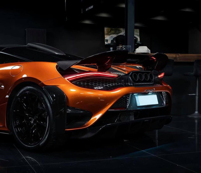 Hệ thống ống xả mới trên McLaren 765LT là điểm nhấn của chiếc xe. Đây cũng là điểm nhận biết cơ bản giữa 765LT và 720S khi 4 ống xả xếp hàng ngang nổi bật hẳn ở phía đuôi.