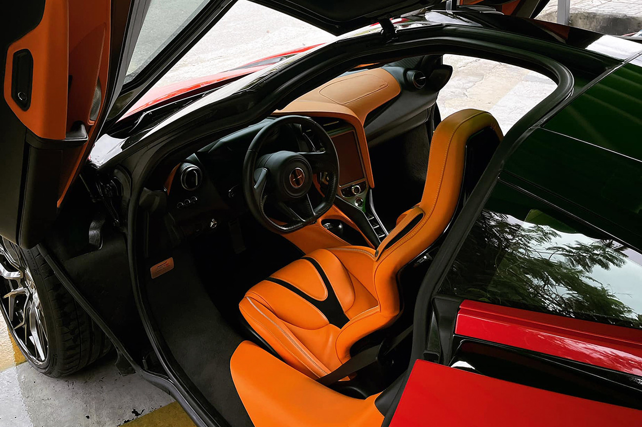 Không gian nội thất của chiếc 720S này ở thời điểm cập bến nước ta là sự kết hợp giữa màu nâu sang trọng và đen huyền bí, điểm xuyết bằng đường chỉ khâu màu trắng.