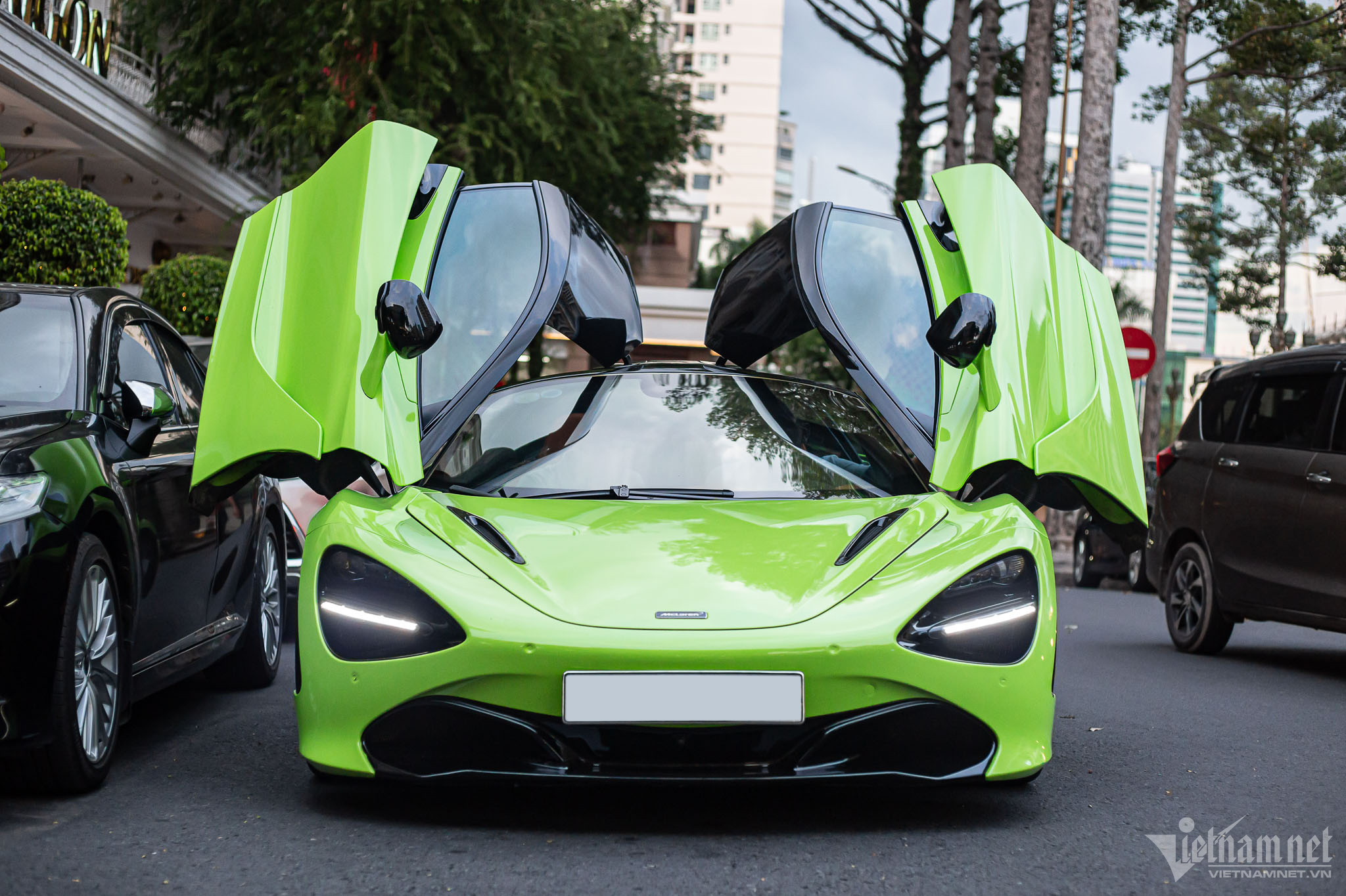 Chiếc McLaren 720S trong bài vừa được giới mộ điệu bắt gặp xuất hiện ở một đại lý kinh doanh xe sang, siêu xe ở Hà Nội.
