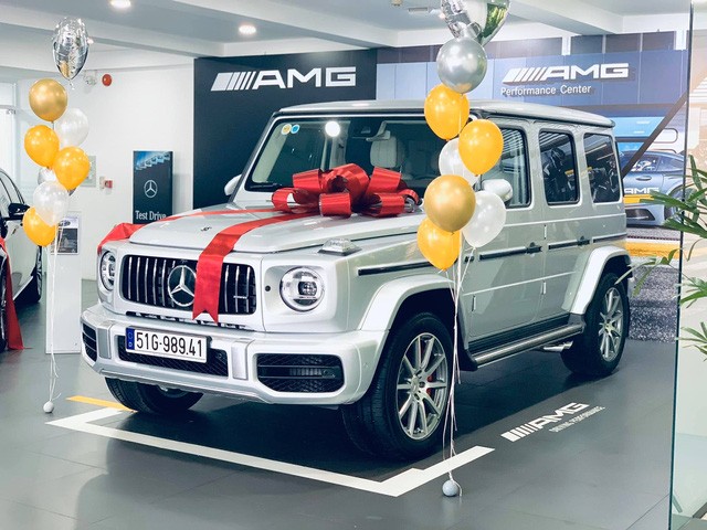 Một chiếc Mercedes-AMG G63 2019 màu Iridium Silver vừa đến khách hàng đầu tiên tại Sài Gòn. Xe có nội thất màu Beige và mang biển số '51G-989.41'. Chủ nhân từng ưng chiếc Maserati GranCabrio Sport, nhưng cuối cùng đã lựa chọn chiếc G63 này.