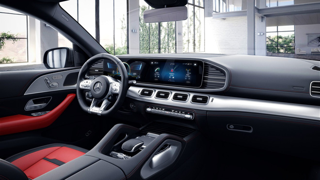 Việc thiết kế mui dốc xuống phía sau giúp chiếc xe năng động hơn, bù lại, người dùng sẽ không có tùy chọn hàng ghế 3. Xe chỉ 5 chỗ ngồi. Nội thất tương đồng dòng GLE tiêu chuẩn với 2 màn hình 12,3 inch, gồm màn hình cụm đồng hồ và màn hình giải trí đặt trên bảng táp-lô sử dụng hệ thống giải trí MBUX mới nhất, có thể nhận lệnh điều khiển qua giọng nói. Màn hình là nơi hiển thị tính năng camera 360 độ và công nghệ hỗ trợ đỗ xe.