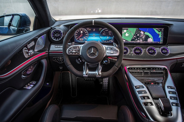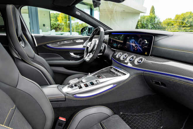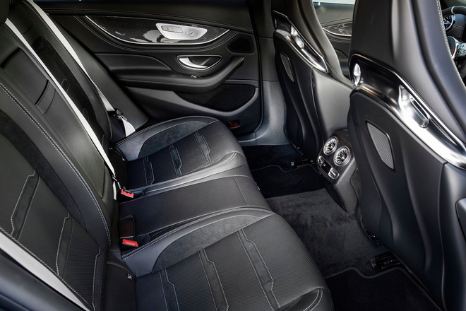 Khác với Panamera, dòng GT 4-Door có cấu hình 5 chỗ ngồi bên trong, với hàng ghế sau ngồi được 3 người. Bản GT 63 S có nội thất quen thuộc của dòng GT với vô-lăng 3 chấu AMG cùng màn hình kép kích thước lớn. Ghế ngồi là dạng đua chứ không phải loại ghế thông thường. Nếu như ngoại thất không sử dụng carbon thì nội thất bản này lại có nhiều chi tiết ốp carbon.