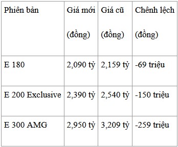 Những ngày cận Tết nguyên đán, mẫu sedan Mercedes-Benz E-Class bất ngờ có mức giá niêm yết mới, khi giảm tới gần 260 triệu đồng so với trước đó. Cụ thể: