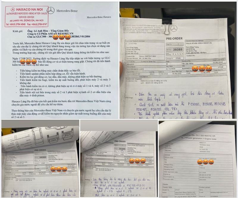 Theo chủ xe, chiếc Mercedes-Benz GLC 300 được anh mua chính hãng từ ngày 21/12/2020 và mới đi được 27.688 km, được bảo hành 3 năm và bảo dưỡng định kỳ tại đại lý chính hãng. Điều khiến anh khó chịu là một hãng lớn như Mercedes-Benz khi làm việc với khách lại chỉ toàn nói chuyện không giấy tờ, chỉ chăm chăm gợi ý khách ký giấy đồng ý cho mở động cơ, đến khi làm gắt mới chịu làm công văn trả lời lý do muốn mở động cơ kiểm tra.