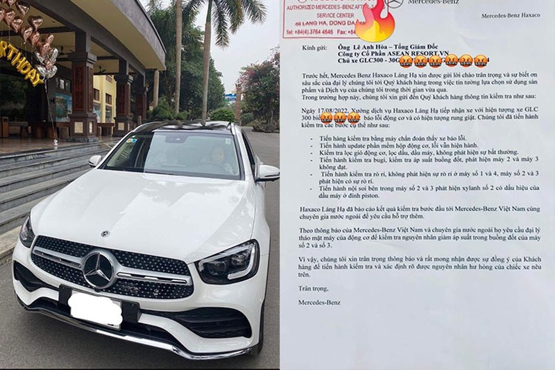 Theo thông tin từ phía chủ xe là anh Nguyễn Hoài Nam (người cầm lái chiếc Mercedes-Benz GLC 300) vào ngày 30/7/2022, trong quá trình di chuyển từ Hà Nội tới Sapa, Lào Cai, chiếc Mercedes-Benz GLC 300 đời 2020 (vẫn đang trong thời hạn bảo hành) đột ngột chết máy. Ngay lập tức, người điều khiển đã liên hệ với bộ phận kỹ thuật chính hãng của Mercedes-Benz tại Việt Nam (Haxaco Hanoi số 46 Láng Hạ, Hà Nội) để tìm hiểu cách khắc phục.