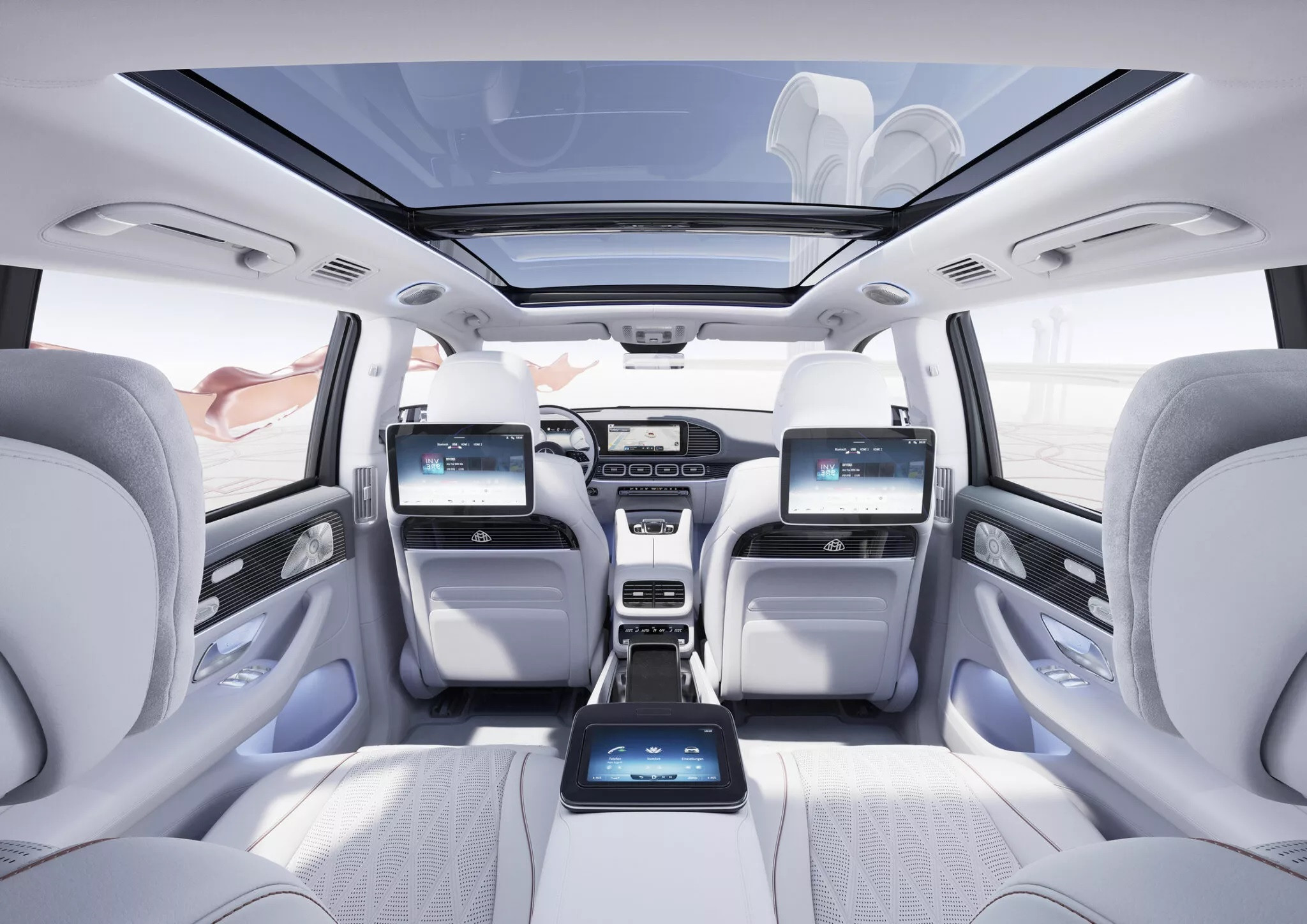 Giống như các mẫu GLS khác, ngoại thất của GLS 600 4Matic 2024 được cung cấp thêm tùy chọn hai màu mới, có tên là Sodalite Blue Metallic và Manufaktur Alpine Grey Non-Metallic. Hệ thống MBUX gồm ba màn hình cảm ứng, có thể tùy chọn với hai cổng USB ở bảng điều khiển trung tâm cùng bộ sạc 100W và hệ thống lọc không khí hiện đại để bảo vệ hành khách khỏi bụi mịn, chất ô nhiễm.