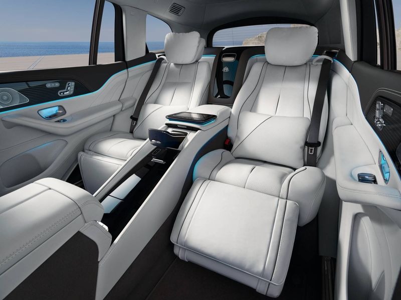 Tuy nhiên, điểm đáng chú ý nhất của Maybach GLS mới nằm ở không gian cabin 4 chỗ, đặc biệt là hai chiếc ghế sau được ngăn cách bởi cụm điều khiển trung tâm tích hợp các điều chỉnh cho chức năng sưởi, thông gió và massage của ghế. Bảng điều khiển cũng chứa một bàn gấp để biến khoang sau xe thành một văn phòng di động.