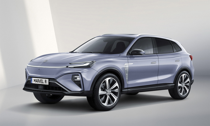 So với MG5 Electric, Marvel R có ngoại hình kín đáo hơn, phần đầu xe vốn dành cho lưới tản nhiệt nay được bịt kín, đèn pha dạng chữ C, đèn hậu mảnh và kết nối với nhau.