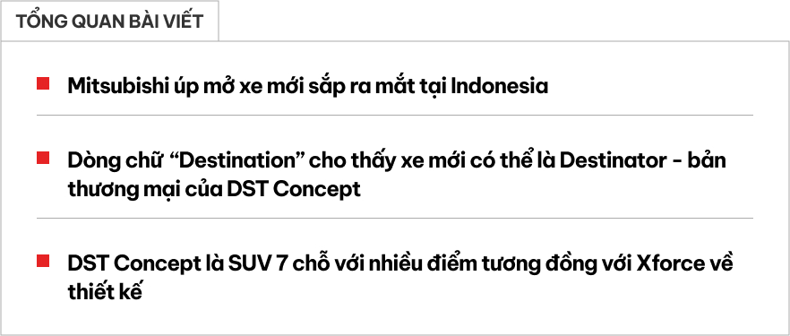 Trước đó, Mitsubishi cũng đã xác nhận sẽ ra mắt một mẫu SUV mới tại GIIAS 2025. Ứng cử viên sáng giá nhất cho màn ra mắt này chính là phiên bản thương mại của DST Concept, mẫu xe từng được giới thiệu tại một số quốc gia Đông Nam Á, trong đó có Việt Nam.