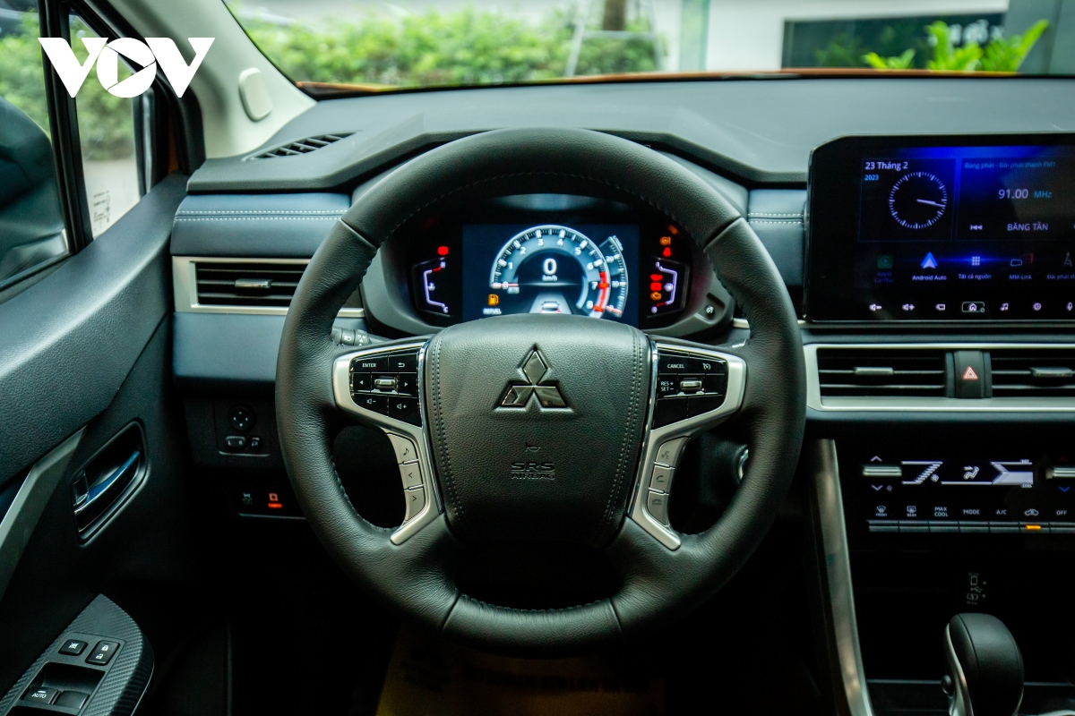 Cùng với những thay đổi về ngoại thất, nội thất của Mitsubishi Xpander Cross 2023 cũng đón nhận nhiều thay đổi: Vô lăng 4 chấu thể thao được thừa hưởng từ mẫu xe Pajero Sport tích hợp các phím điều khiển đa chức năng mang đến sự thuận tiện trong quá trình thao tác và vận hành xe. Đồng hồ kỹ thuật số sau vô lăng, có kích thước lớn 8 inch giúp hiển thị trực quan đa dạng thông tin, dễ sử dụng với màu sắc bắt mắt hơn.