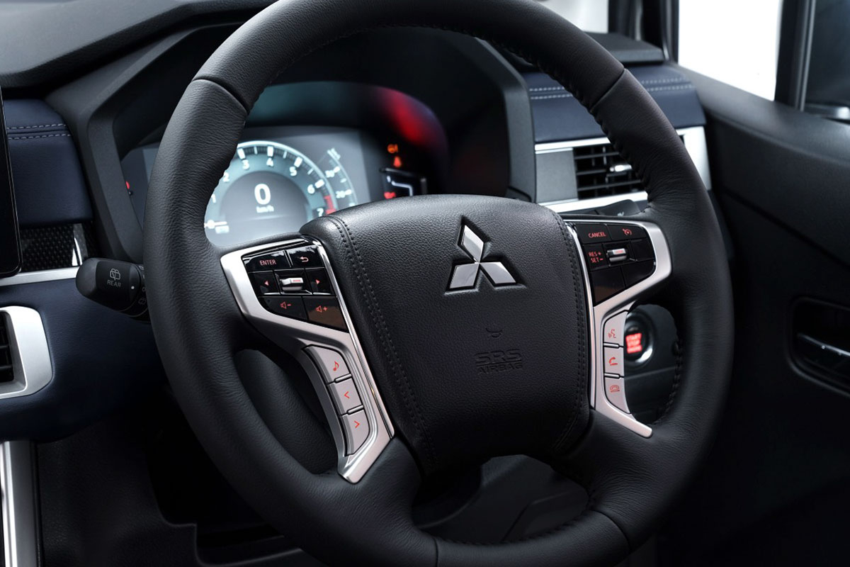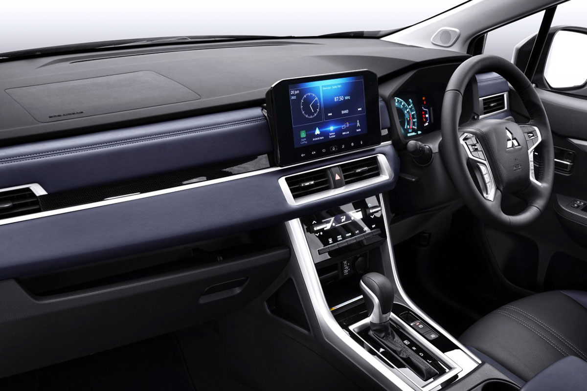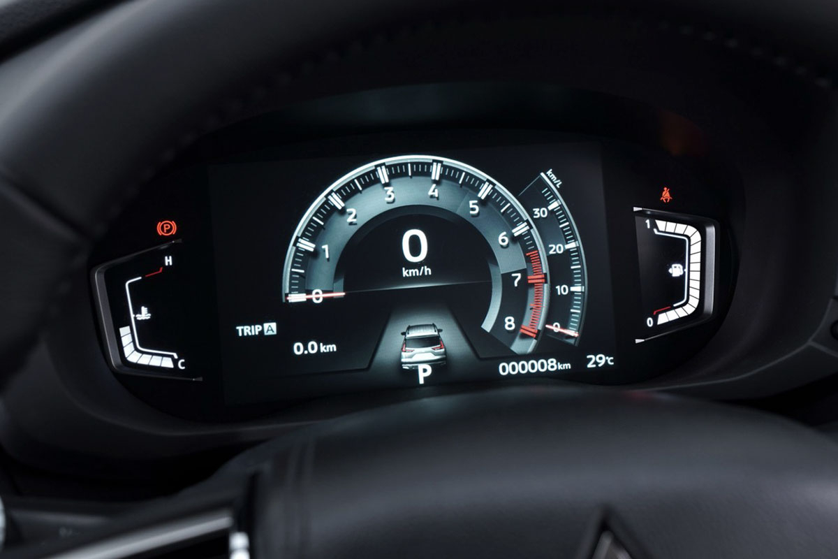 Bên trong, một số nâng cấp đáng kể ở Mitsubishi Xpander Cross 2023 đến từ cụm đồng hồ kỹ thuật số 8 inch và vô lăng được lấy nguyên từ mẫu Mitsubishi Pajero Sport.
