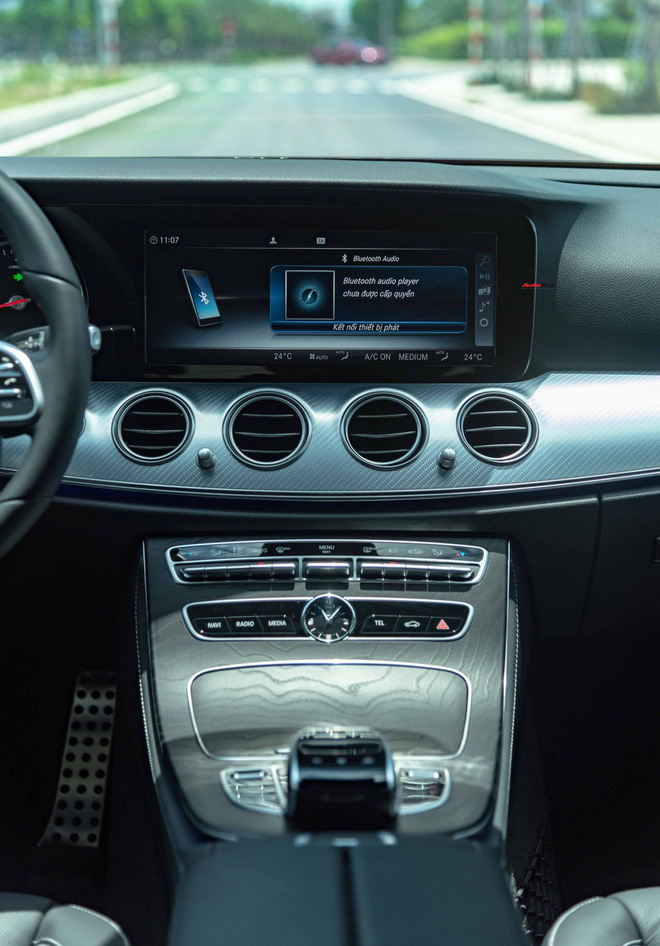 Khoang nội thất Mercedes-Benz E 200 Sport cũng khá dễ nhận biết với phần ốp sáng màu chạy quanh nội thất.
