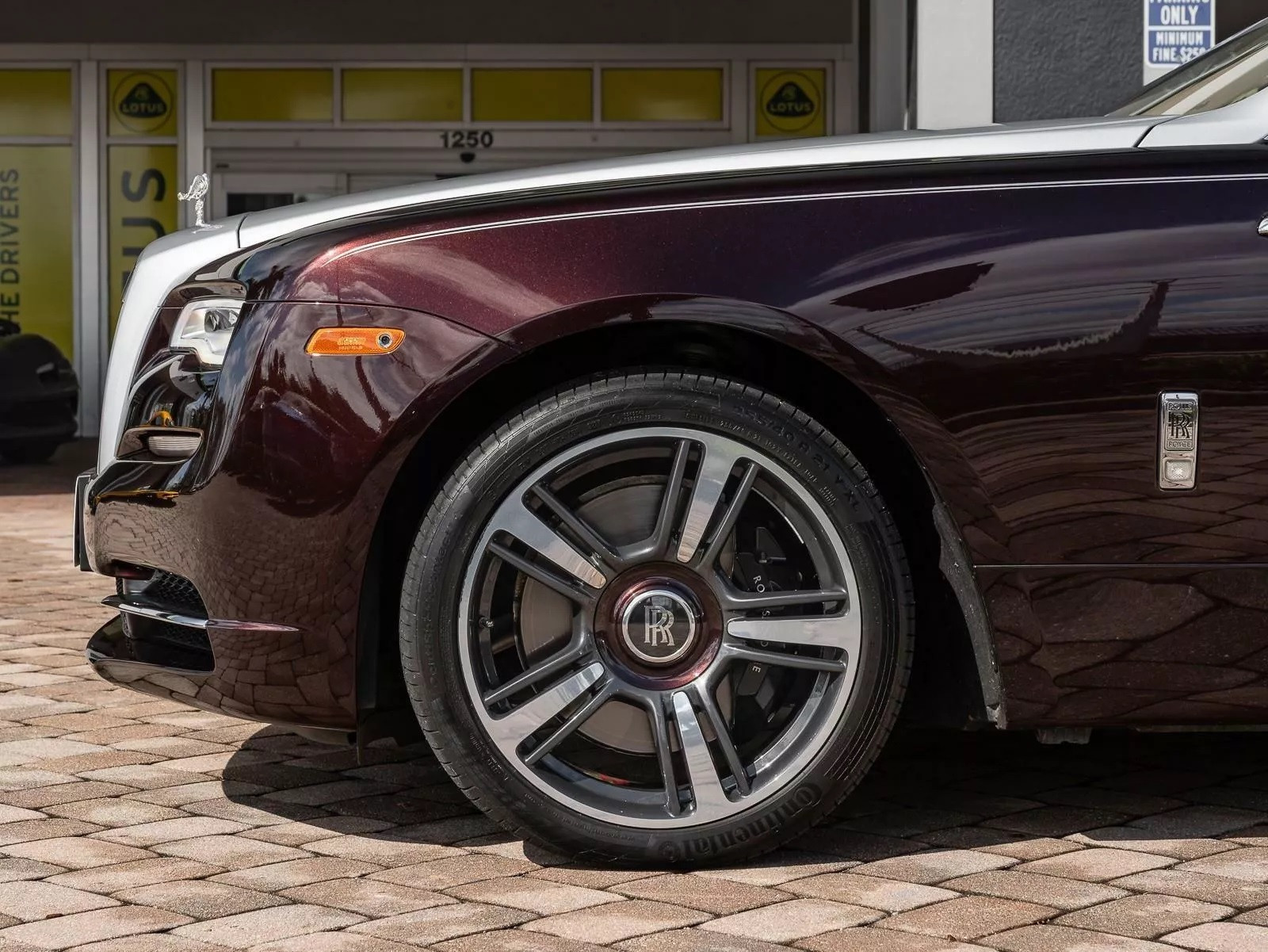 Chiếc Rolls-Royce Wraith được khuyến mãi có sự tương đồng khi cũng sơn màu bạc và đỏ ở ngoại thất. Xe đã lăn bánh hơn 28.000 km.