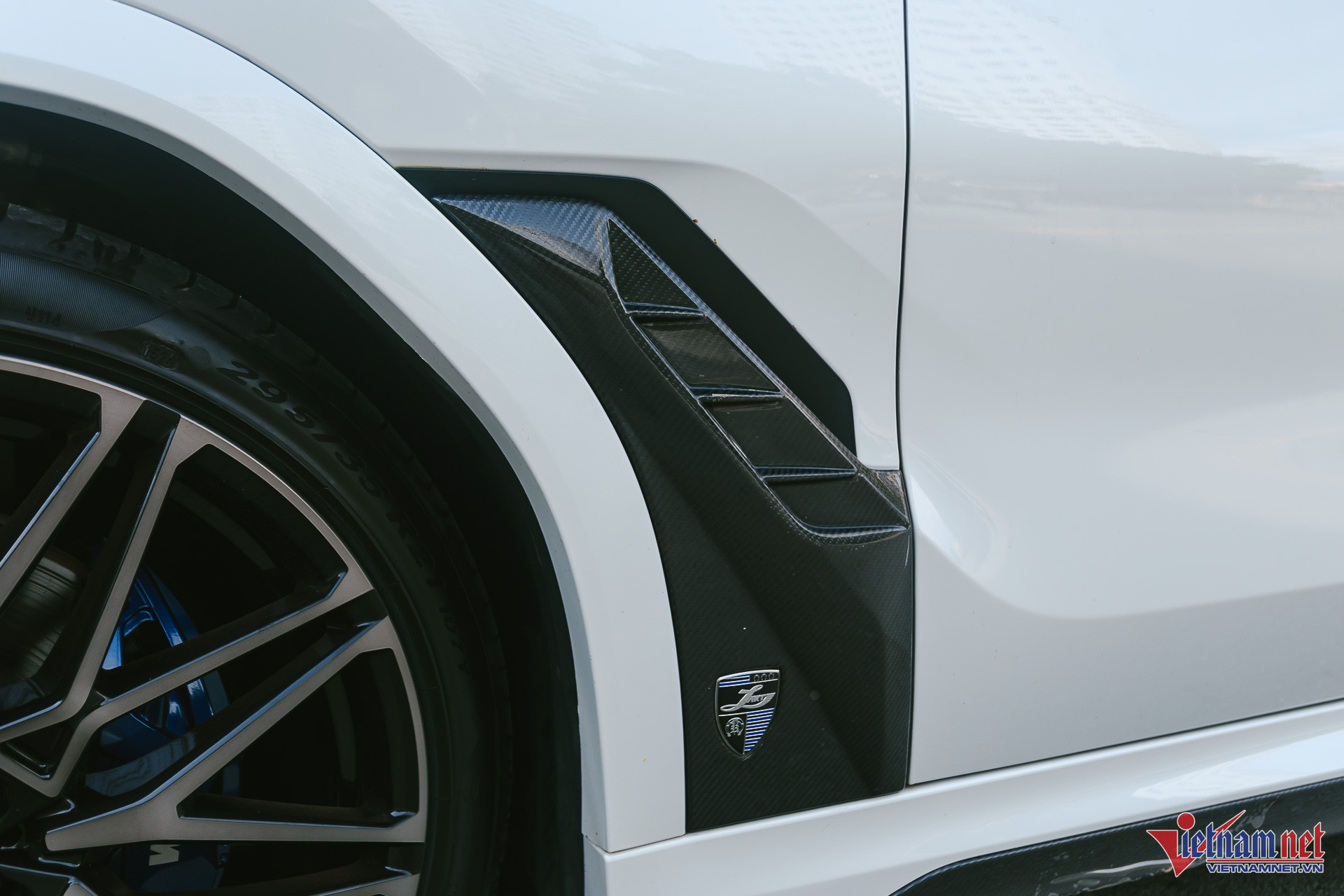 Riêng gói độ bodykit đến từ thương hiệu Larte Design đã có giá hơn 700 triệu đồng. Nhờ bộ bodykit mới, diện mạo chiếc xe trở nên hầm hố, thể thao hơn rất nhiều. Phần đầu xe bổ sung bộ líp cản trước với nhiều hốc gió nhỏ. Mặt ca-lăng thay khung viền mới làm bằng sợi carbon. Nắp ca-pô cũng thay sang loại có nhiều đường gân lớn hơn.