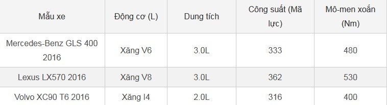 Dưới đây là bảng so sánh thông số hệ động lực của GLS 400 với các xe đối thủ: