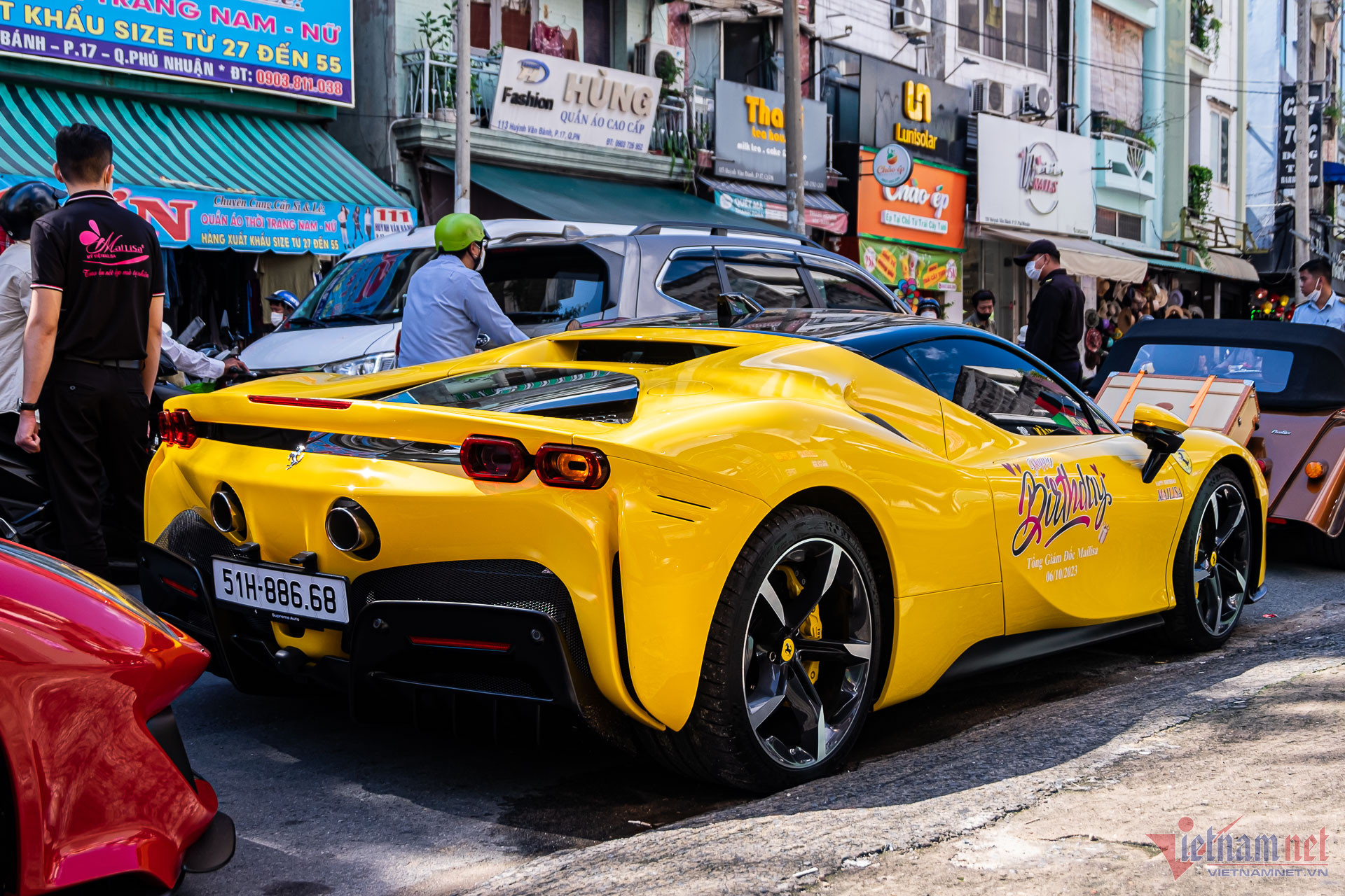 Nổi bật nhất là chiếc Ferrari SF90 Stradale màu vàng độc nhất Việt Nam. Xe mang biển số 88668, với ý nghĩa “phát tài” theo quan niêmn của dân chơi biển số. Riêng “siêu ngựa” này đã có giá lăn bánh hơn 40 tỷ đồng.