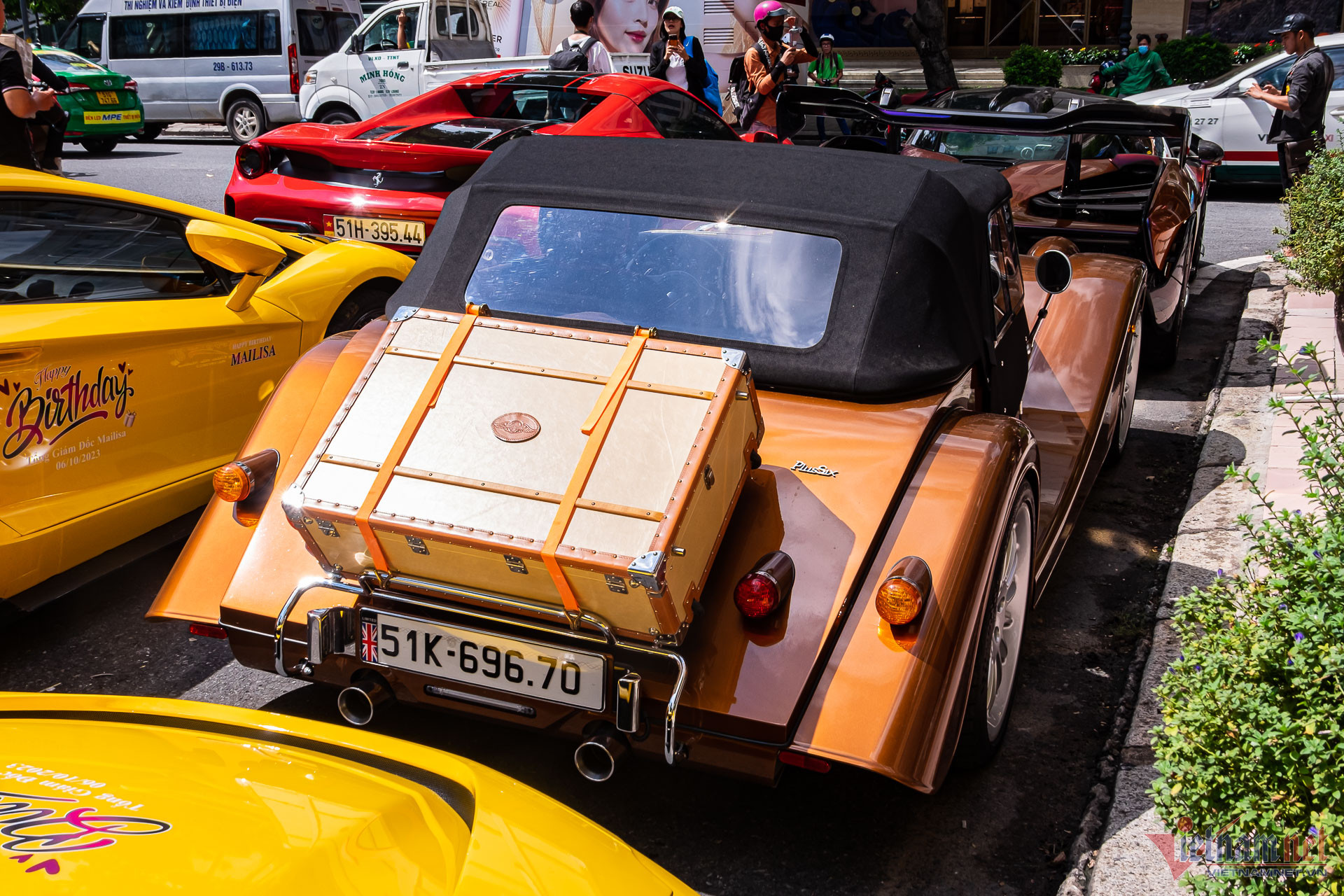 Một mẫu xe thể thao hàng hiếm khác tham gia dàn xe diễu hành có nguồn gốc từ Anh quốc, là chiếc Morgan Plus Six được đại gia Sài thành mua hồi tháng 6/2023 với giá hơn 8 tỷ đồng.