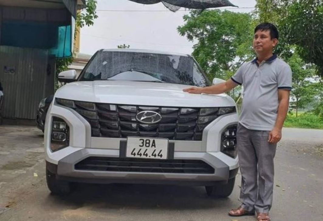 Hyundai Creta của anh Nguyễn Đắc Trí (SN 1971, trú xóm Sơn Thủy, xã Mỹ Lộc, Can Lộc, Hà Tĩnh) cũng may mắn khi trúng biển số đẹp 38A-444.44 vào tháng 4/2022.