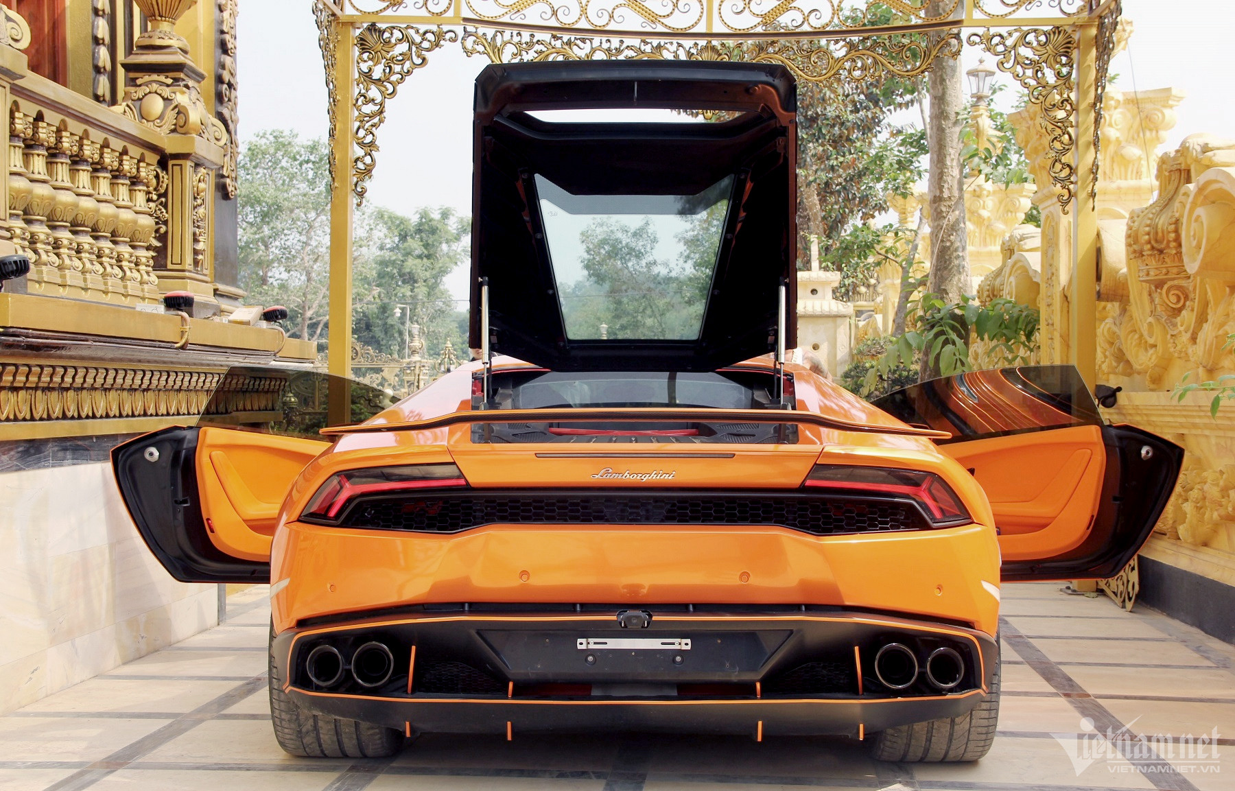 Mới đây, gia chủ tòa lâu đài tiếp tục gây chú ý khi sắm thêm siêu xe Lamborghini Huracan LP 610-4 đời 2017 đẹp long lanh. Đáng chú ý, chiếc xe rất tương đồng với tòa lâu đài khi sở hữu ngoại thất màu vàng đồng rực rỡ.