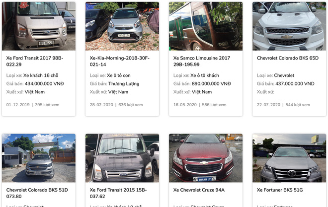 Trong khi đó, VIB đang rao bán tới 62 phương tiện vận tải, bao gồm cả xe ô tô con và xe tải. 2 chiếc có giá khởi điểm thấp nhất là xe tải TMT và xe tải Thành Đô với giá 170 triệu và 195 triệu đồng.
